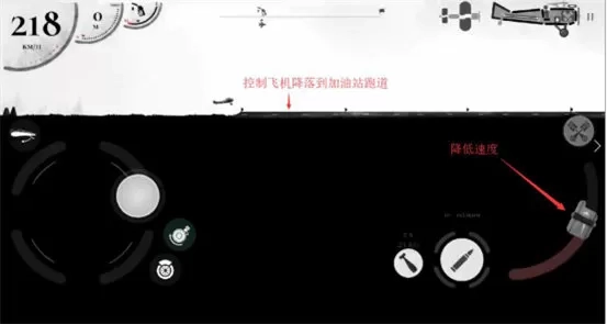通过油门降低时速后,微调左边的机翼摇杆,选择时机降落到跑道上,飞机会自动加油。