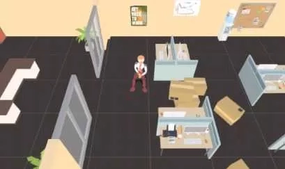 2、穿过办公室,在不同的场景里四处的游荡,及时的刹车前进,将对方推到;