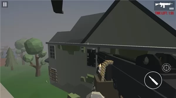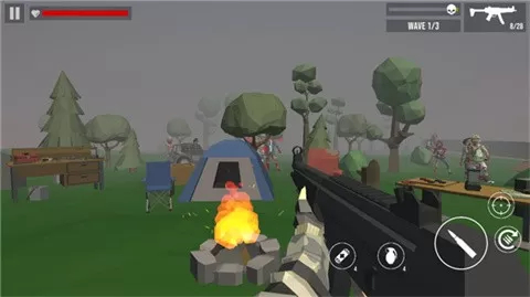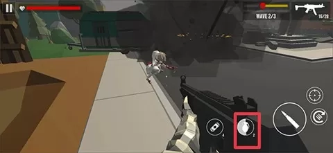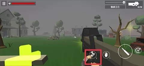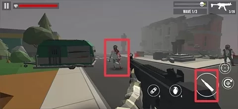 2、在游戏中通过左边屏幕移动来控制方向,右边子弹按钮则是发射弹药击杀僵尸