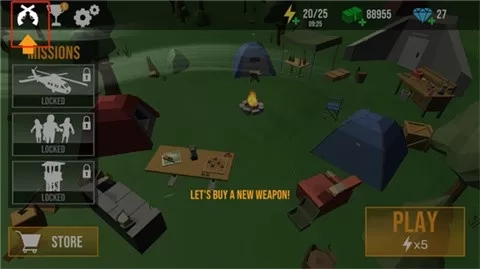 1. 第一步,打开《僵尸启示录》游戏,接着点击游戏界面左上角的枪支图标。