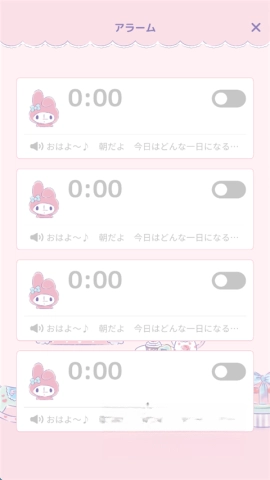 点击兔子图标就能进入闹钟界面,设置闹钟让美乐蒂唤醒你。