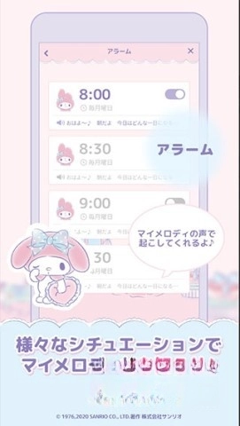 开启闹钟功能,美乐蒂就会每天用温柔的声音唤你起床,助你活力满满地开启崭新的一天。