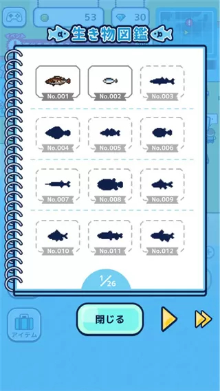 3、完成生物绘本!在游戏中出现了超过300种生物!从小丑鱼等著名鱼类到鲈鱼和竹荚鱼等熟悉的鱼类,还有机会钓到皇带鱼等稀有的深海鱼类!螃蟹、鲨鱼、海葵……连海星都能用一根手指抓到!让我们抓住很多,瞄准完整的生物图画书!绘本中还有关于生物的解释。 (也许你可以熟悉鱼的种类?)瞄准钓鱼大师!