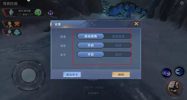 7、作战界面右上角有个设置按钮,玩家可以切换自由视角、音乐等;