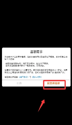 点击温馨提示里的同意并继续。