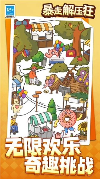 暴走解压狂是一款集合了多种休闲解压小游戏的合集类游戏,里面包含了消除、破坏、分类、找茬等丰富玩法。消除类玩法采用经典的三消模式,玩家通过移动物品,让三个相同的物品连成一线即可完成消除。破坏类玩法则需要玩家点击屏幕来破坏目标,像泡泡、肥皂这类物品都可以成为破坏对象,能帮助玩家快速释放情绪。益智类玩法包括找不同等,需要玩家仔细观察细节之处。所有小游戏都配备了可使用的道具,比如炸弹、加速、提示等,这些道具能够有效降低游戏难度。