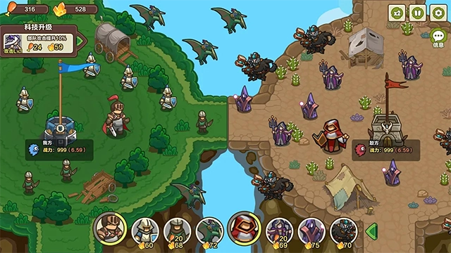 游戏里有骑士、龙、狮鹫等多种士兵可以挑选。玩家得巧妙组合这些士兵的能力,打造出强大的战斗队伍,去抵御敌人的势力。