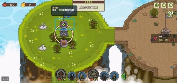 进入关卡后,双击城堡招募农民,先着手采摘果树,为后续发展储备资源。