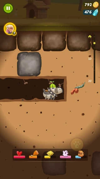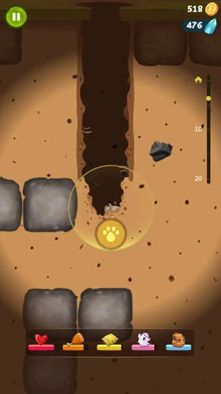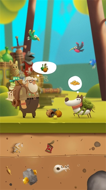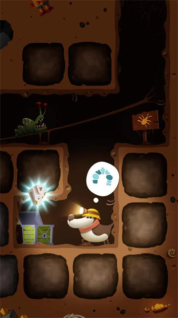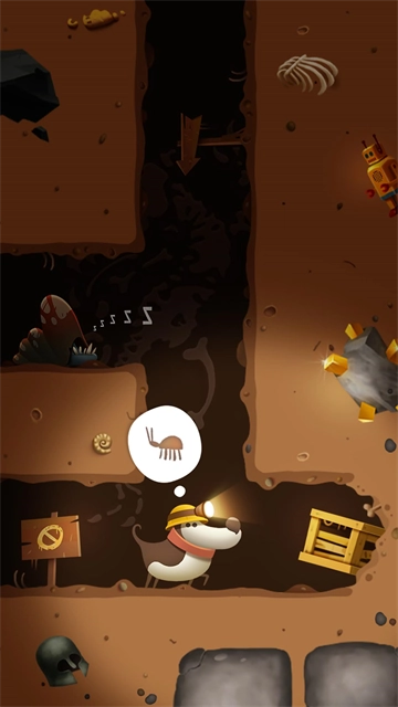 画面的色彩明亮而细腻,地下世界的层次清晰分明,各式各样的神秘宝物被深埋在不同的土层里,正等待着玩家指挥小狗去逐一发掘出来。