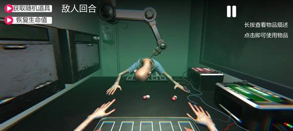 另外,轮盘对局游戏中还包含着各式各样的道具,像复制器、锤子、针剂、观测器之类,每一种道具都有其独特的功能——复制器能够复制对手的道具,针剂则可以恢复一格生命值,这对玩家的心理素质与身体素质都是不小的考验。屏幕前的你,能否顺利通过这场医学挑战呢?快来试试看吧!