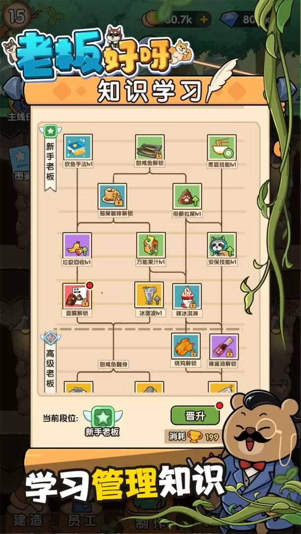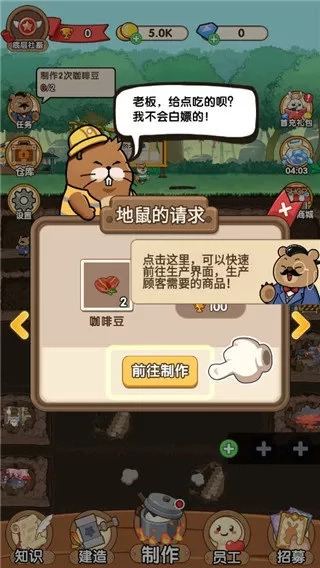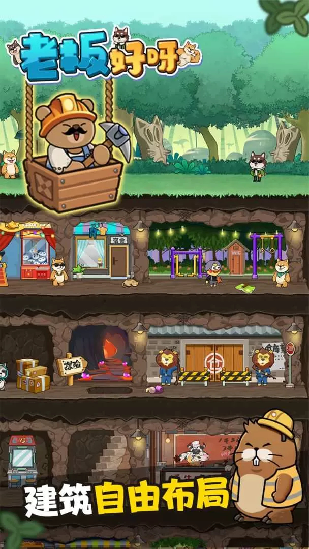 是一款模拟经营,游戏采用卡通的游戏风格,无论是游戏背景、人物角色、还是一些细枝末节的小物件都尤为可爱,可以为玩家带来视觉上的享受。在这款卡通精美的游戏世界中,玩家将成为森林里面的老板管理森林地下王国,发展各种作坊,制作食物和物品等,您可以自由的建造布局,打造属于自己的森林乌托邦,也可以在森林中模拟开公司体验,成为优秀的老板,带领员工一起来发家致富。老板好呀ios版中玩家可以操控着小动物来不断的生产食品,自由的来进行建筑物的布局,建造布局很引人注意,各种背景也会随机改变,全程目标都是以赚钱为主。在这里玩家还可以招募更多店员,学习更多经营管理方面的知识,一起努力成为富豪,做森林中的大老板。