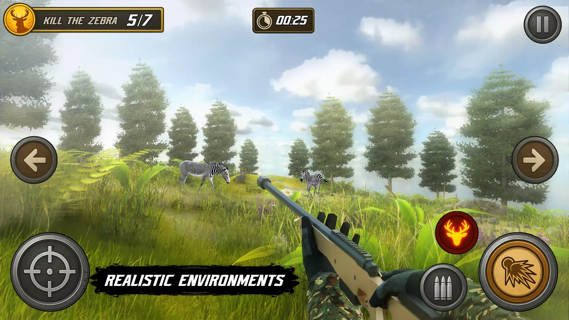 拟真野外生态:3D场景刻画细腻,动态天气系统(涵盖雨、雪、雾等)与昼夜循环机制,会同步影响环境能见度及动物行为模式;写实的环境音效(如风声、兽吼)进一步强化了狩猎时的沉浸体验。 多样猎物与智能AI:收录鹿、狮、虎、熊、鳄鱼等20余种野生动物,每种动物都具备独特习性——比如鹿的警惕性极高,熊则拥有极强的攻击性;AI系统会依据玩家发出的声音、留下的气味等信息,做出逃跑或反击的智能反应。 双视角与多元玩法:支持第一人称与第三人称视角自由切换,同时提供狙击远程狙杀、弓箭潜行狩猎、陷阱埋伏等多种狩猎风格,既能满足玩家对精准射击的追求,也能展现策略布局的乐趣。 离线体验+轻量化设计:无需强制联网,碎片化时间也能随时开启狩猎;操作采用摇杆搭配按键的经典组合,新手教程简洁明了,适配移动端特性,助力玩家快速上手。