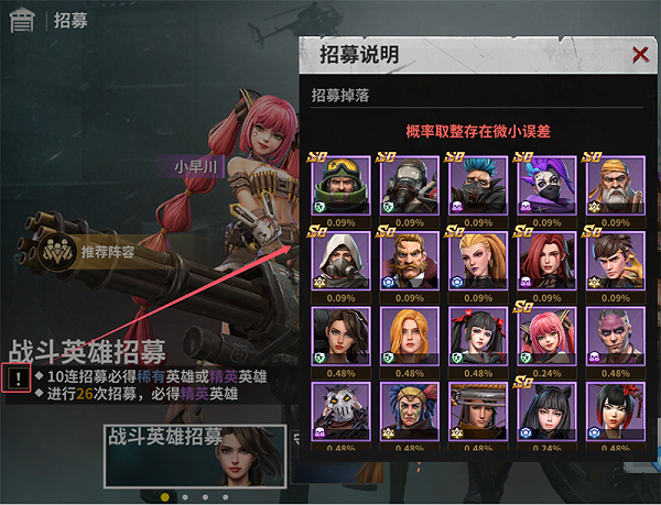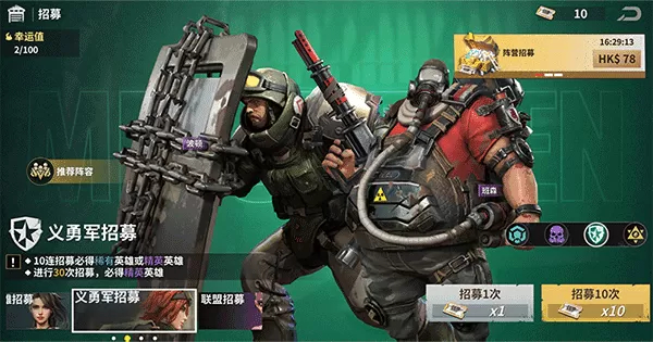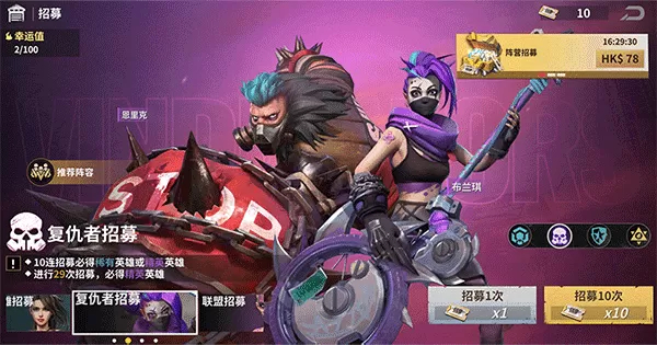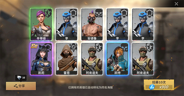 点击【招募】可随机招募到英雄。已招募到的英雄则会转化成同名海报,用于进阶英雄。
