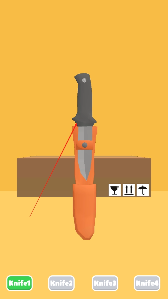 点击开始后向上滑动把小刀从里面抽出来,抽出来就能对着箱子进行开箱操作了。