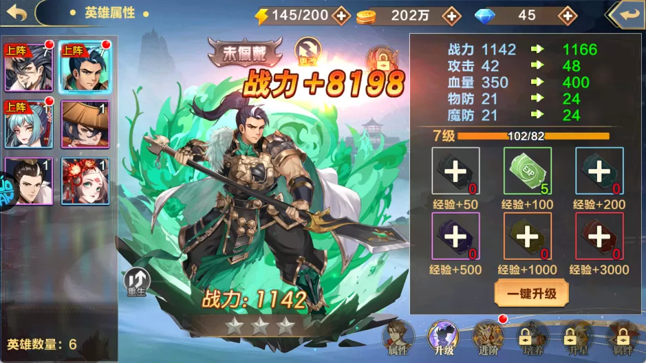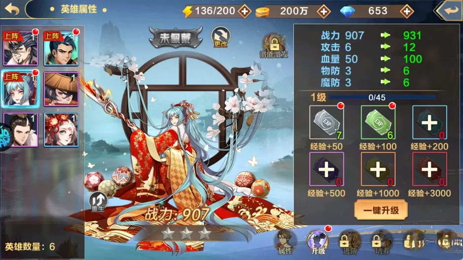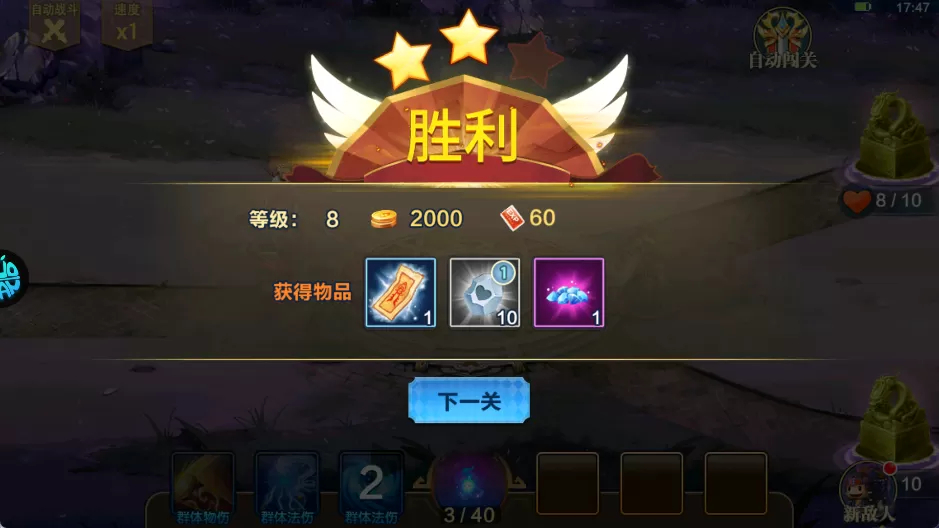2. 闲暇之时多刷副本获取资源,借此快速强化主力英雄。升级顺序上,优先提升输出技能,其次再强化控制与辅助技能。