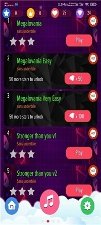 在游戏主界面,你可以浏览并挑选自己喜爱的Sans主题曲目,选定后点击开始,就能进入演奏界面了。