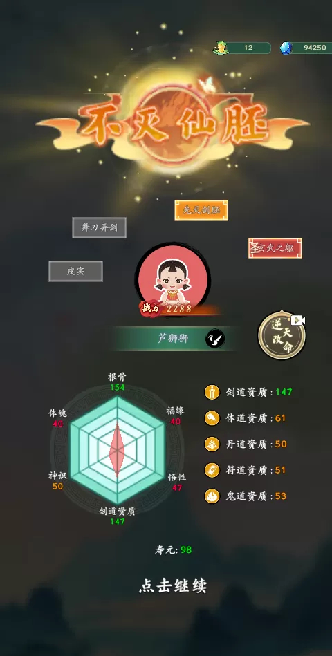3、多元发展,修仙四艺、兵体丹符皆可通大道,财情侣法地等资源助力修行。