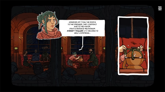 视觉层面采用欧洲地下漫画家打造的手绘风格,每一帧画面都极具艺术质感。蜿蜒的小巷、破旧的贫民窟、摇摇欲坠的茶馆等场景,通过细腻笔触营造出荒诞又满含故事感的氛围,再搭配奇特的角色设定,让整个木星殖民地弥漫着奇幻色彩。 听觉方面则有Guglielmo Diana创作的轻松原创配乐,舒缓的旋律与游戏的解谜节奏、剧情节奏完美契合,能让玩家在探索破败殖民地的过程中,收获听觉上的宁静与沉浸体验。
