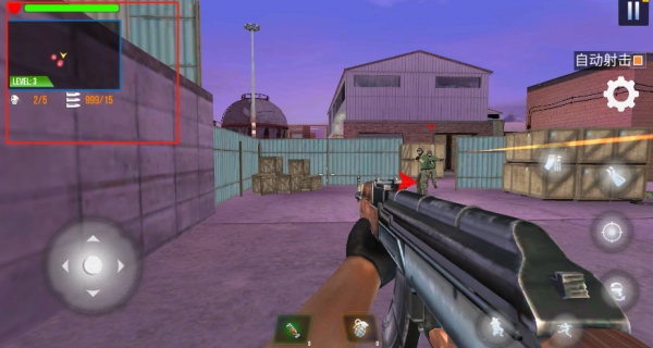 通过左上角的小地图了解敌人分布的密集区域,再依据右侧血条的状态来规划战术性的移动路线。