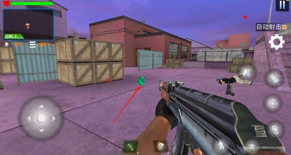 在场景里寻找医疗包道具,把它捡起来就能马上补满生命值,让你能持续战斗。