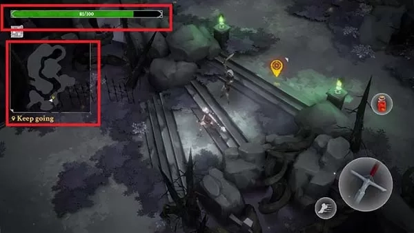 1. 开启灵魂猎手地牢官方版游戏,进入后,使用左手操控角色移动。