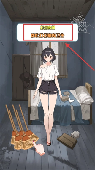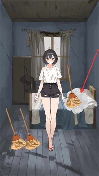 接到打扫房间的任务后,点击地面上的扫帚,即可启动室内卫生清洁工作,完成该任务能够增加与阿珍的亲密度。