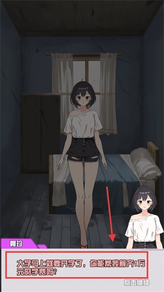 阿珍需要筹集1万元学费,点击继续后,通过经营煎饼摊来赚钱,同时推进恋爱相关的剧情。
