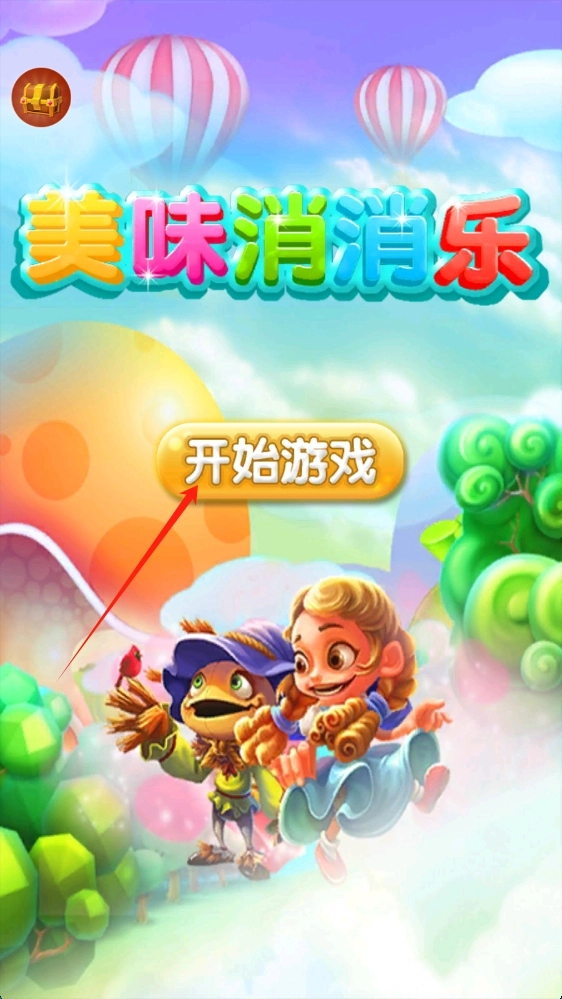 在美味消消乐的游戏启动界面,点击“开始游戏”按钮,即可开启充满乐趣的消除之旅,所以请点击“开始游戏”。