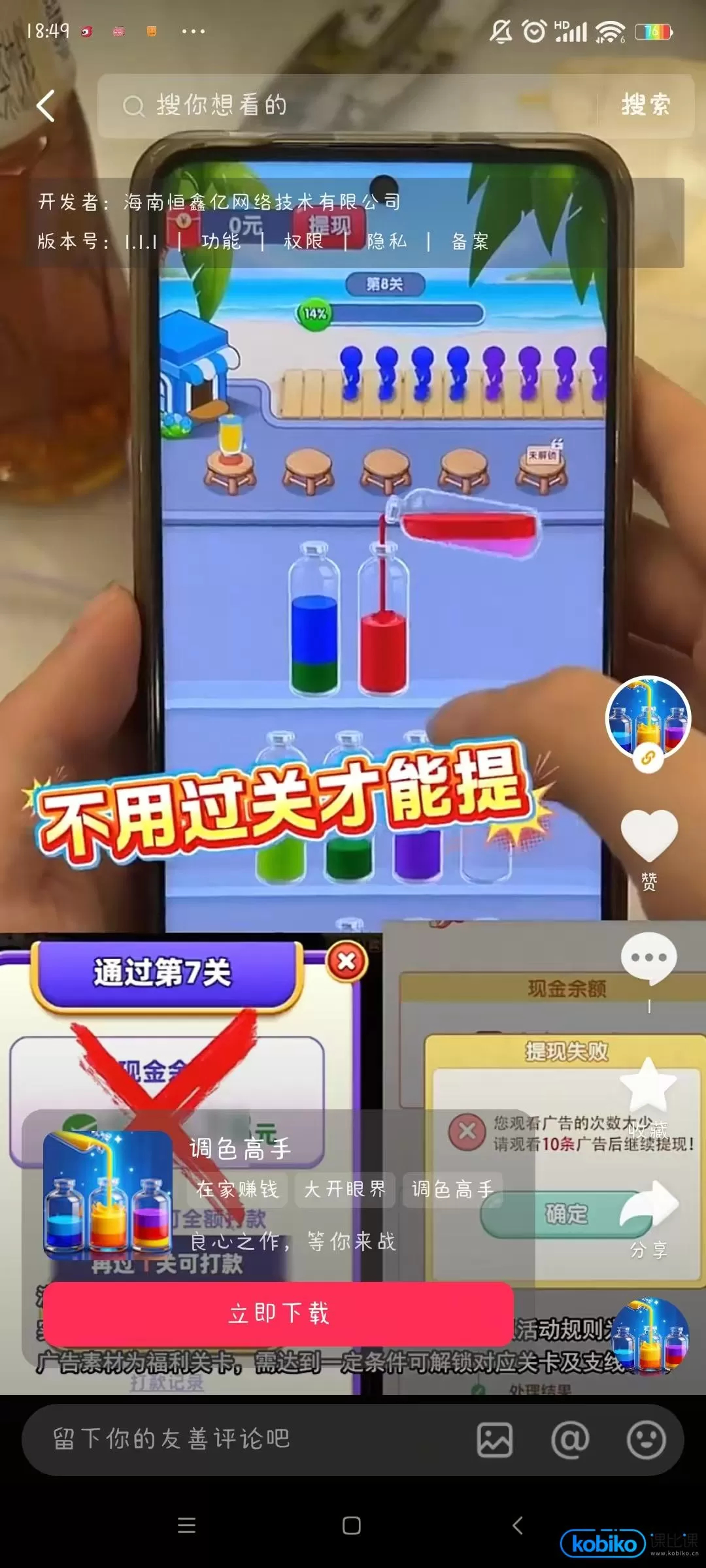 调色高手红包版,是一款围绕水瓶颜料消除玩法打造的红包小游戏。其色彩缤纷,通过简单的指尖操作,玩家能迅速上手开启挑战。只需将颜料匹配消除,就能完成游戏中的各项任务,丰厚的红包奖励等你拿。这是一款超解压的游戏挑战,玩家可直接开启闯关挑战,哪怕是碎片时间,也能轻松应对。红包福利相当丰厚,无论何种类型的玩家,都适合上手一试。在调色闯关中,轻松领取福利,在解压消除颜料的过程中,为玩家带来绝佳的消除体验。完成游戏里的闯关任务,即可领取红包,非常适合玩家在闲暇时光赚取奖励,真正实现边玩边赚,千万不要错过!