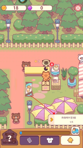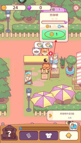 点击任务后会提示完成任务的操作方法,例如要升级热咖啡,只需点击咖啡旁边的升级按钮即可。