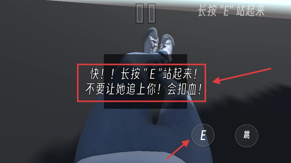 长按【E】键起身站立,这样能防止被她追上并扣除生命值,要迅速站起来逃离危险区域。
