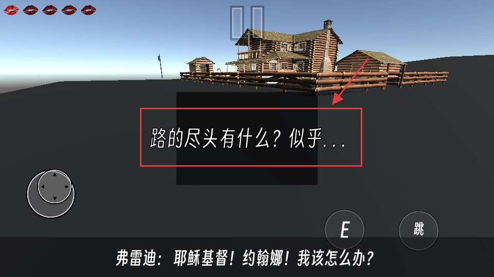 沿着道路探寻,留意【路的尽头会有什么——好像...】的提示,结合角色的疑惑来思考逃脱的方向。