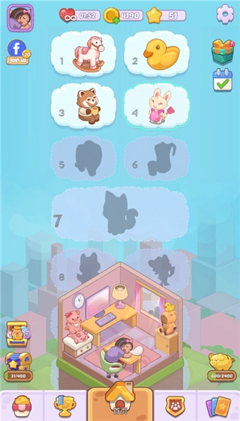 拥有丰富多样的小物件解锁体系,游玩过程中可不断解锁家具、装饰等各类好物,随心搭配摆放,亲手打造独属于自己的温馨小家,沉浸式体验布置家园的乐趣与成就感。