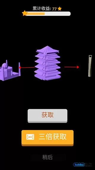 玩家胜利后收集的星星,可用于解锁战场中心的建筑。在游戏主页,玩家点击左下角的建筑图标,就能进入相应页面,完成中心建筑的切换。