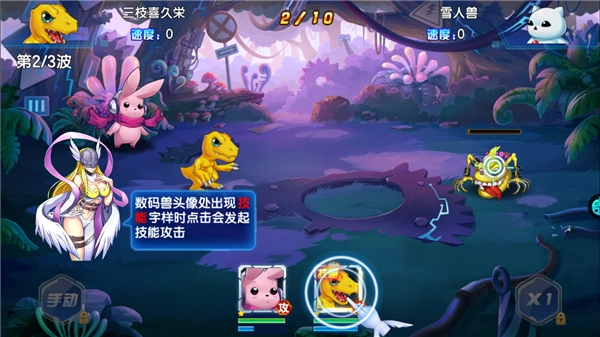 在连击状态消失前,点击另一个数码兽的头像,即可触发连击效果。