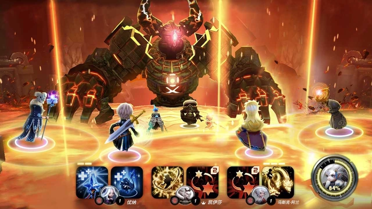 玩家在游戏中能够操控三个主要角色,同时搭配一个辅助角色——这个辅助角色既可以是好友的角色,也能选用自己已有的角色。角色的能量条充满后,就只能释放大招;此外,角色还具备诸如辅助型的无敌技能、增加血量的护盾、控制类技能以及技能冷却时间等设定。为了应对不同的关卡BOSS和竞技场玩法,玩家需要针对性地培养多个角色。