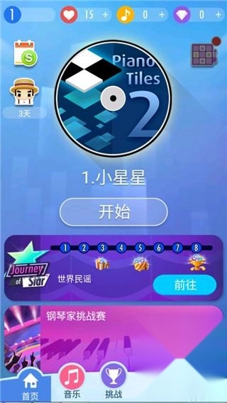 别踩白块儿2是一款界面简洁明了、玩法颇具趣味的音乐类游戏。在游戏中,玩家需跟随音乐节奏,持续点击不断下落的黑色滑块,以此挑战自己在限定时间内所能取得的最高分数。这一过程十分考验玩家的专注力与反应能力。不过,在冲击高分时也别忘了保持轻松的心态,经过多次尝试后,便能自然而然地记住铺面,毕竟熟能生巧嘛。