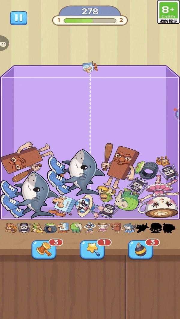 核心玩法规则是:玩家需要操控不断下落的物件,将相同形状的物件凑在一起,以此完成合成与进化的过程。这一过程不仅对玩家的判断能力提出了考验,还要求玩家具备快速的反应能力,以便有效维持游戏空间的合理利用。
