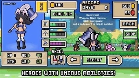 然后进入超像素生存游戏,游戏里有各种各样的角色可以选择,每个角色都拥有独特的属性机制和技能。