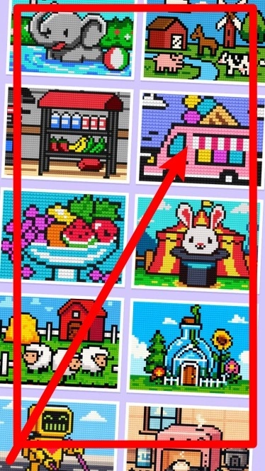 画面呈现出多款像素拼图作品,玩家能够自主挑选心仪的图案来参与挑战,每一幅拼图都具备独特的主题以及多样的色彩组合。