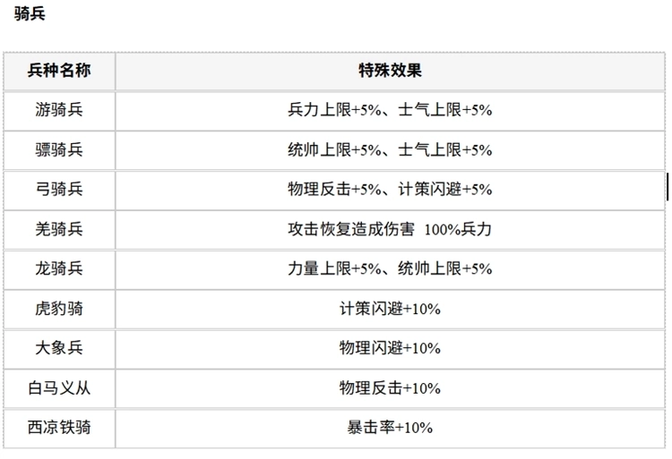 武将兵种中的骑兵,作为具备高机动性的近战突击力量,其冲锋威力极为突出,在战场上善于通过侧翼包抄的方式快速歼灭敌军,对于远程兵种有着显著的克制效果,是游戏中后期实施战术突袭的核心兵种,非常适配速攻类型的阵容搭配。