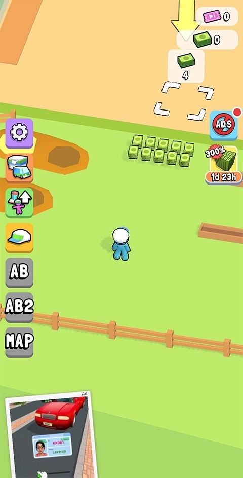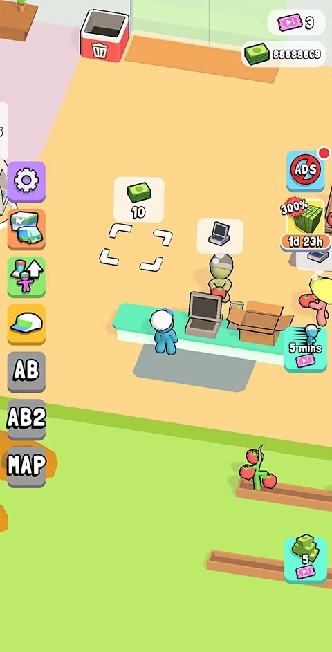 进入游戏后,你可以通过滑动屏幕来操控小蓝人移动到方框所在的位置,这样就能用金币解锁收银台了。