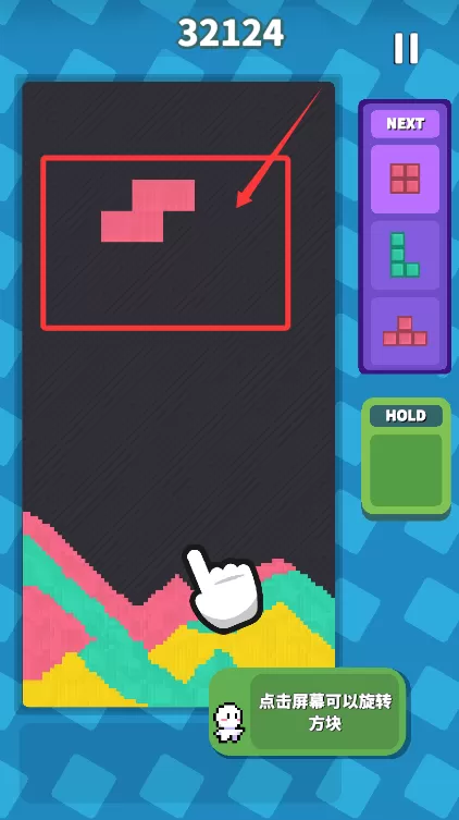 1. 只需轻触屏幕的任意一处,就能调整方块的朝向。唯有灵活转动,方可寻得最佳的下落角度。