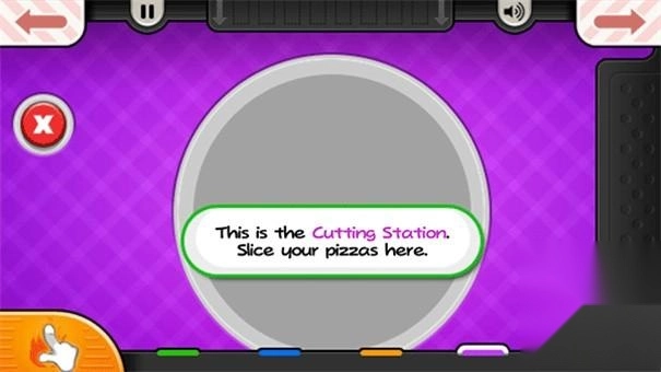 制作完成后,来到切割站,在这里切披萨;
