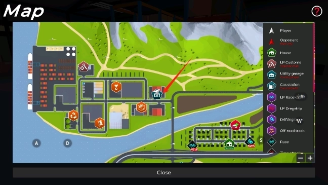 在地图上找到蓝色仓库。