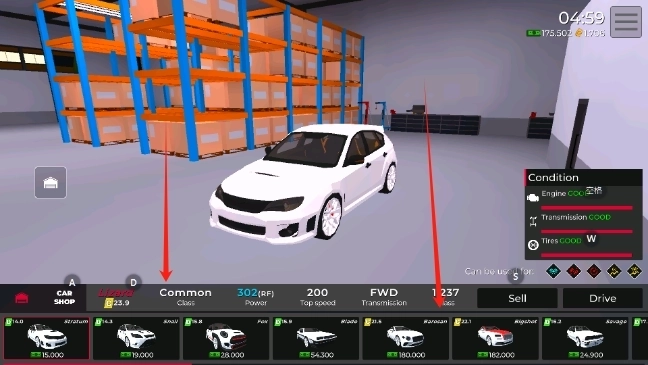 你可以在仓库里买新车。