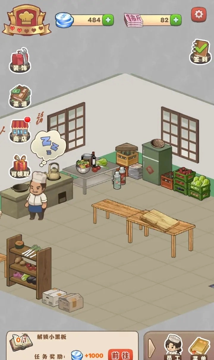 雇佣厨师来做菜,完成更多任务,可以解锁更多食谱。
