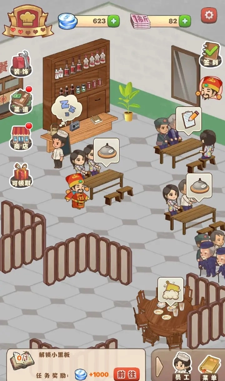 完成任务赚取的金币,可以用来装修饭店。