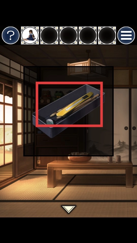 打开蓝色盒子后,取出红框内的【美工刀】,该物品或许是后续谜题、顺利完成逃脱的重要道具。