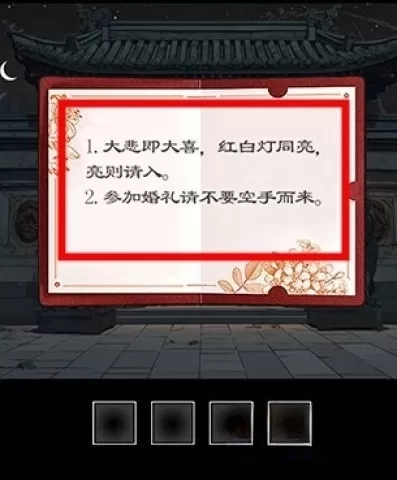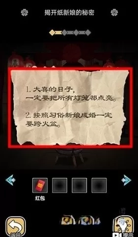 在“纸新娘”关卡,观察门上的红色请柬,洞悉背后的秘密。